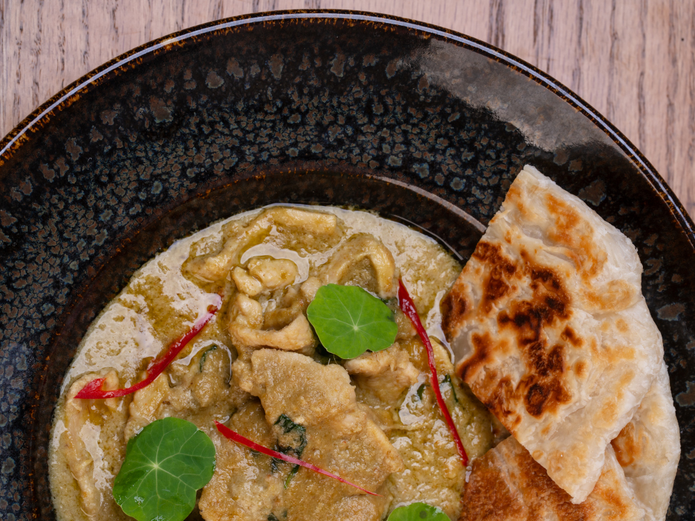 Chicken breast, green curry, coconut milk, chili slivers, kaffir lime leaves, sweet basil. Served with your choice of crispy roti or jasmine rice.
